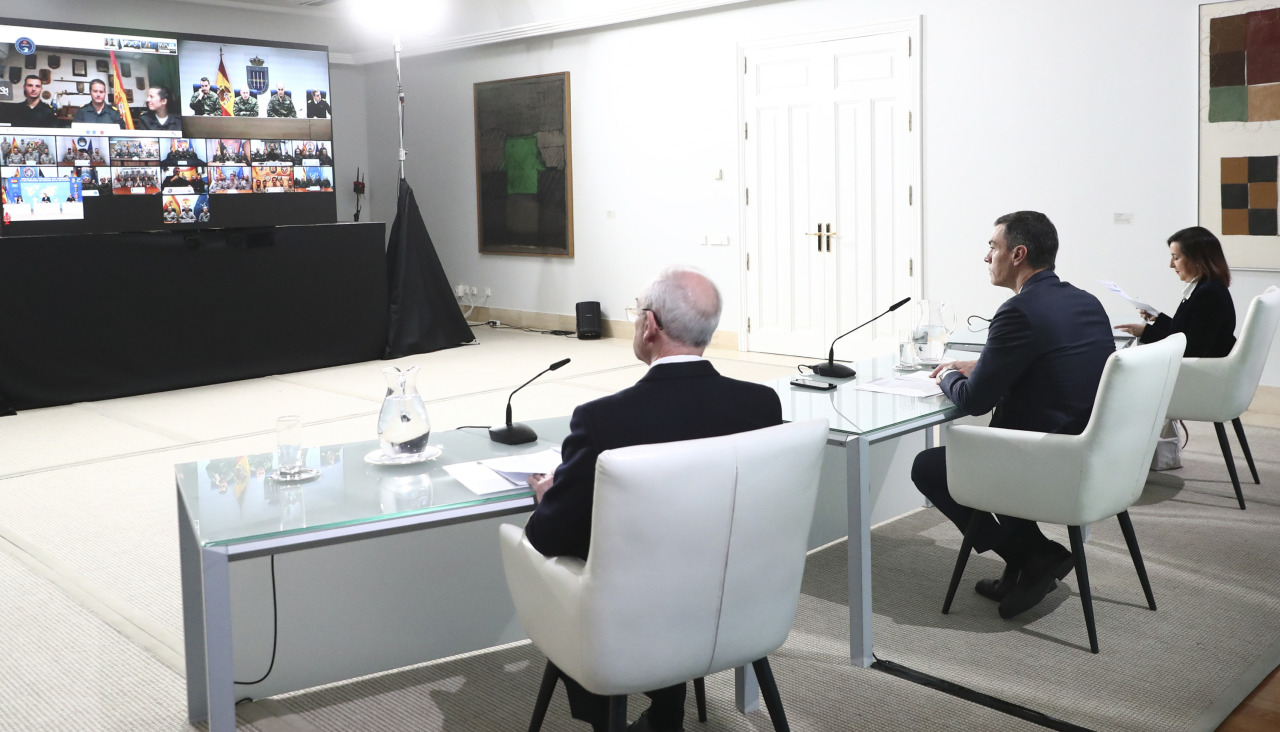 El presidente del Gobierno, Pedro Sánchez, ha mantenido este martes una videoconferencia con las unidades españolas en misiones humanitarias y de paz en el exterior, con motivo de la celebración de la Navidad.
