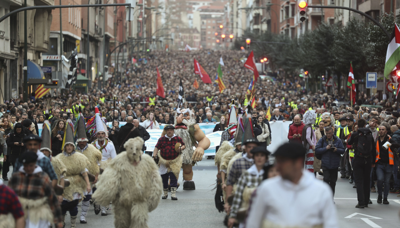 Decenas de miles de personas se han manifestado este sábado en Bilbao en defensa de los derechos de los presos de ETA y han pedido el fin de las "excepcionalidades" en la política penitenciaria que, según han denunciado, se aplica a este colectivo.