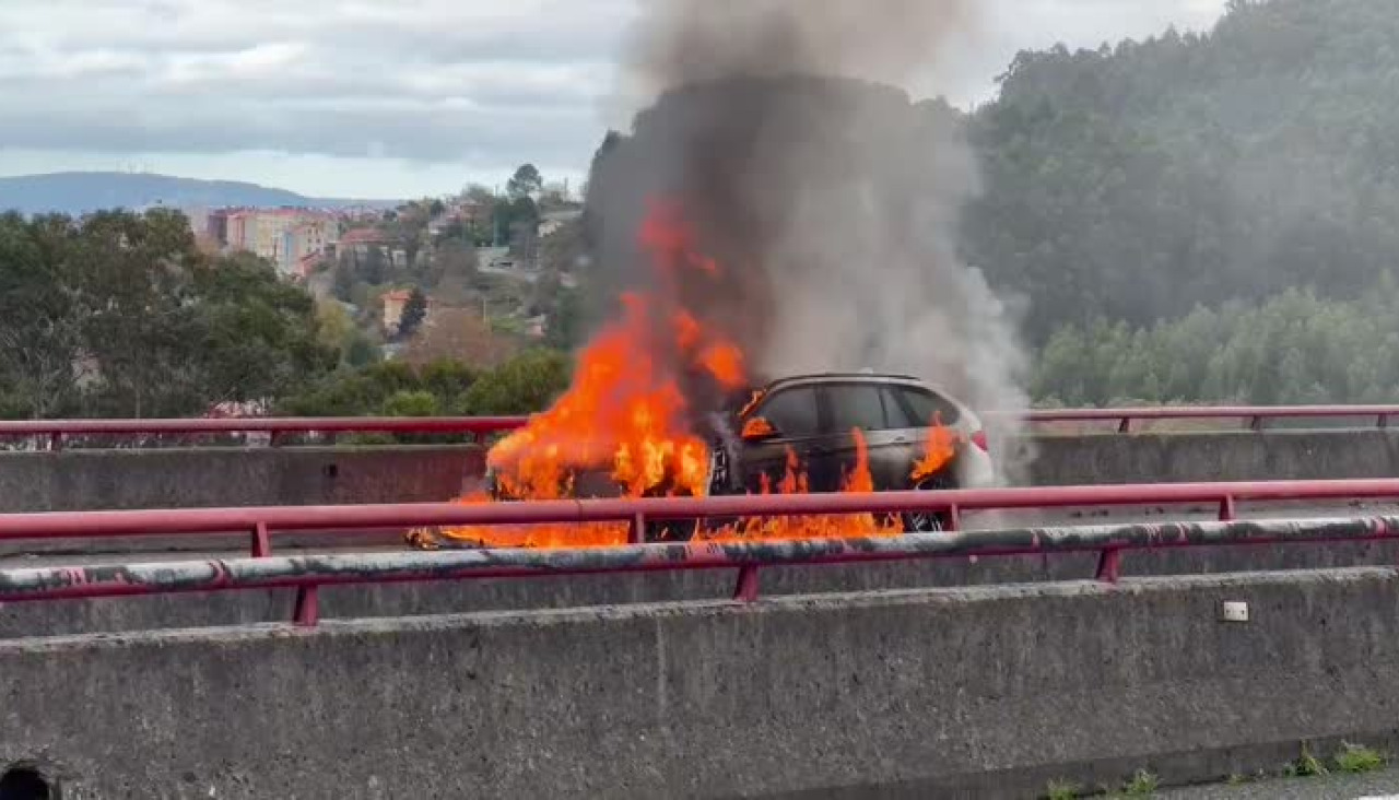 Un vehículo quedó completamente calcinado en la PO-551 a su paso por el municipio pontevedrés de Bueu tras ser perseguido desde Marín donde le dieron el alto al conductor, pero este hizo caso omiso.