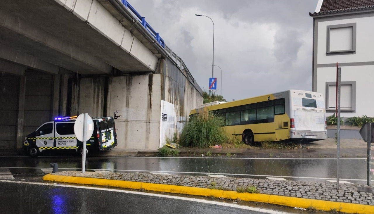 El sinestro se produjo en torno a las 15.40 horas de este sábado en la carretera AC-481 a su paso por Outeiro do Castiñeiro, donde el autobús se fue de frente en la rotonda que da acceso al colegio Manuel Peleteiro y acabó impactando contra el viaducto por el que transcurre la autopista.