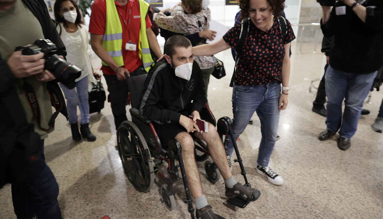 Llegó en silla de ruedas y en el aeropuerto estaban esperándolo media docena de familiares.