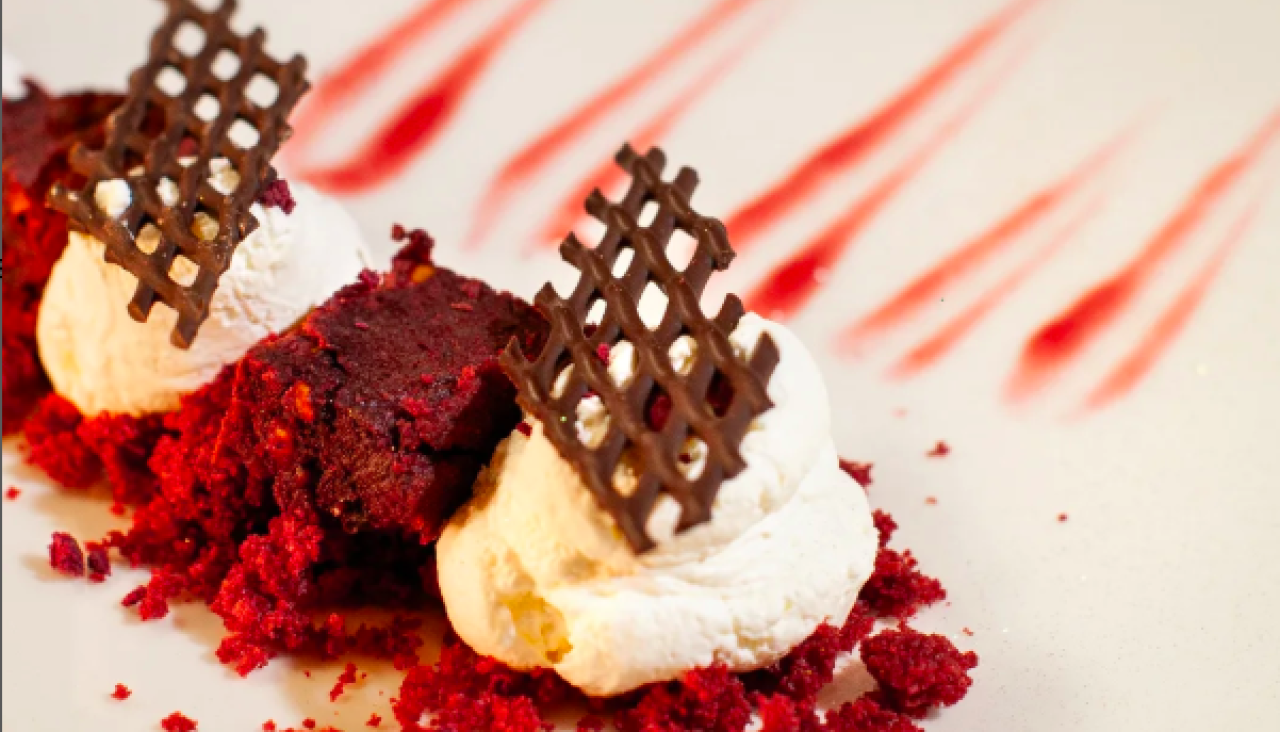 - Postre: Cremoso de chocolate y avellanas, espuma de yogur y frambuesas liofilizadas.