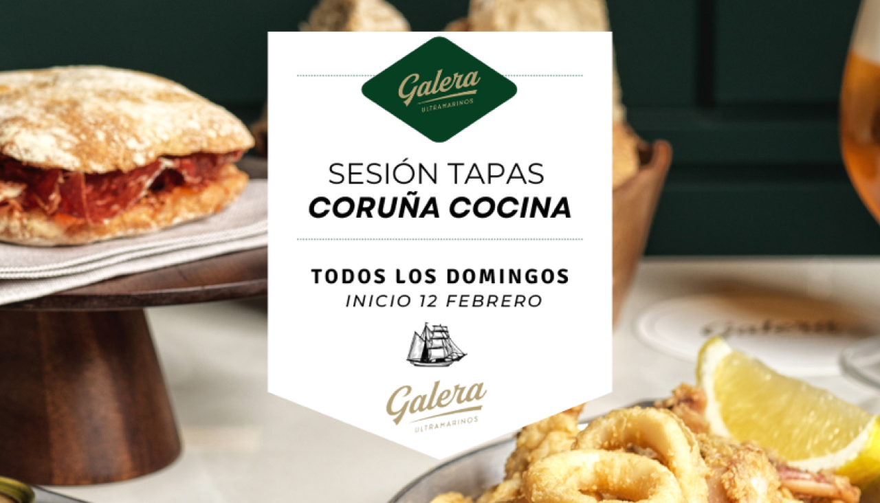 Ultramarinos Galera, el último establecimiento del Grupo Peculiar, arranca este domingo día 12 de febrero una sesión de tapas en colaboración con los chefs de la asociación Coruña Cocina. Cada domingo, uno de los cocineros estará a cargo de la realización de una tapa especial. El evento tendrá lugar en el local situado en la calle Galera, en horario de 13:30 a 14:30 horas. Se servirán 50 tapas a un precio de 3€ y hasta agotar existencias.