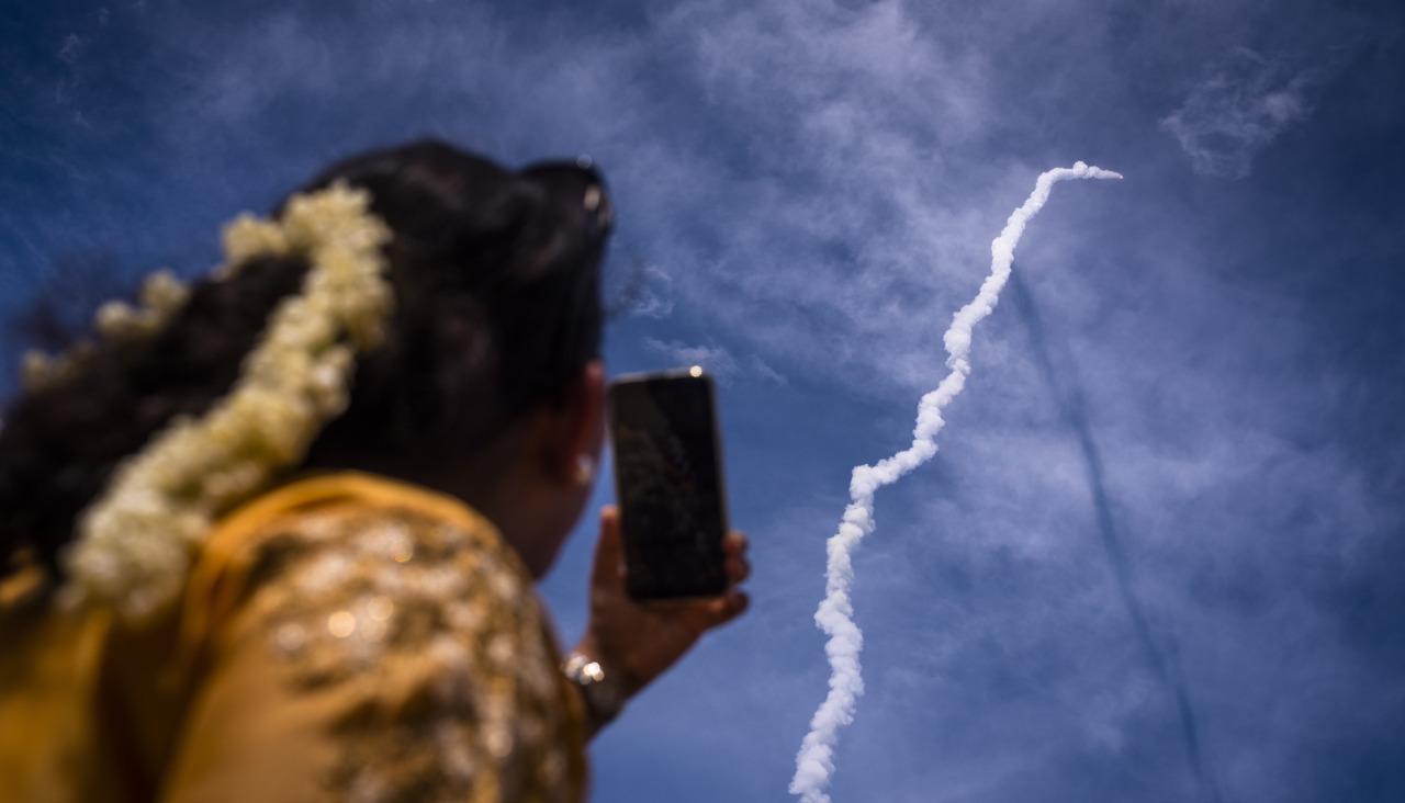 Miles de familias acompañaron la cuenta atrás del despegue desde el centro de lanzamiento, en la localidad de Sriharikota en el estado suroriental de Andhra Pradesh, para luego estallar en una ola de aplausos y gritos de emoción a medida que el cohete Launch Vehicle Mark-III (LVM3) despegaba de la tierra a las 14.35 horas (9.05 hora GMT).