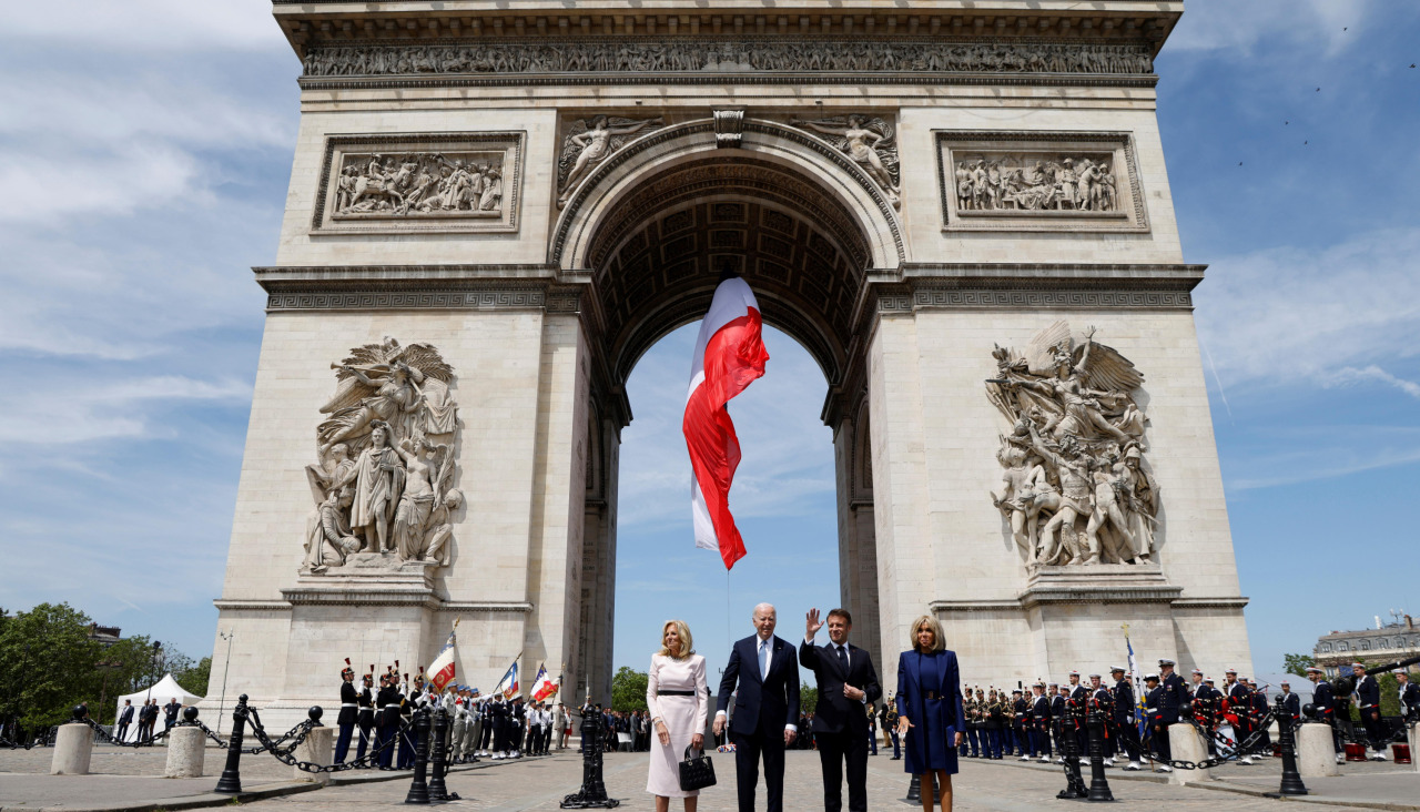 Tras el despliegue de un enorme convoy de seguridad que perturbó la circulación de París, Biden y su esposa, Jill, fueron recibidos por Macron y su mujer, Brigitte, en las inmediaciones del Arco del Triunfo.