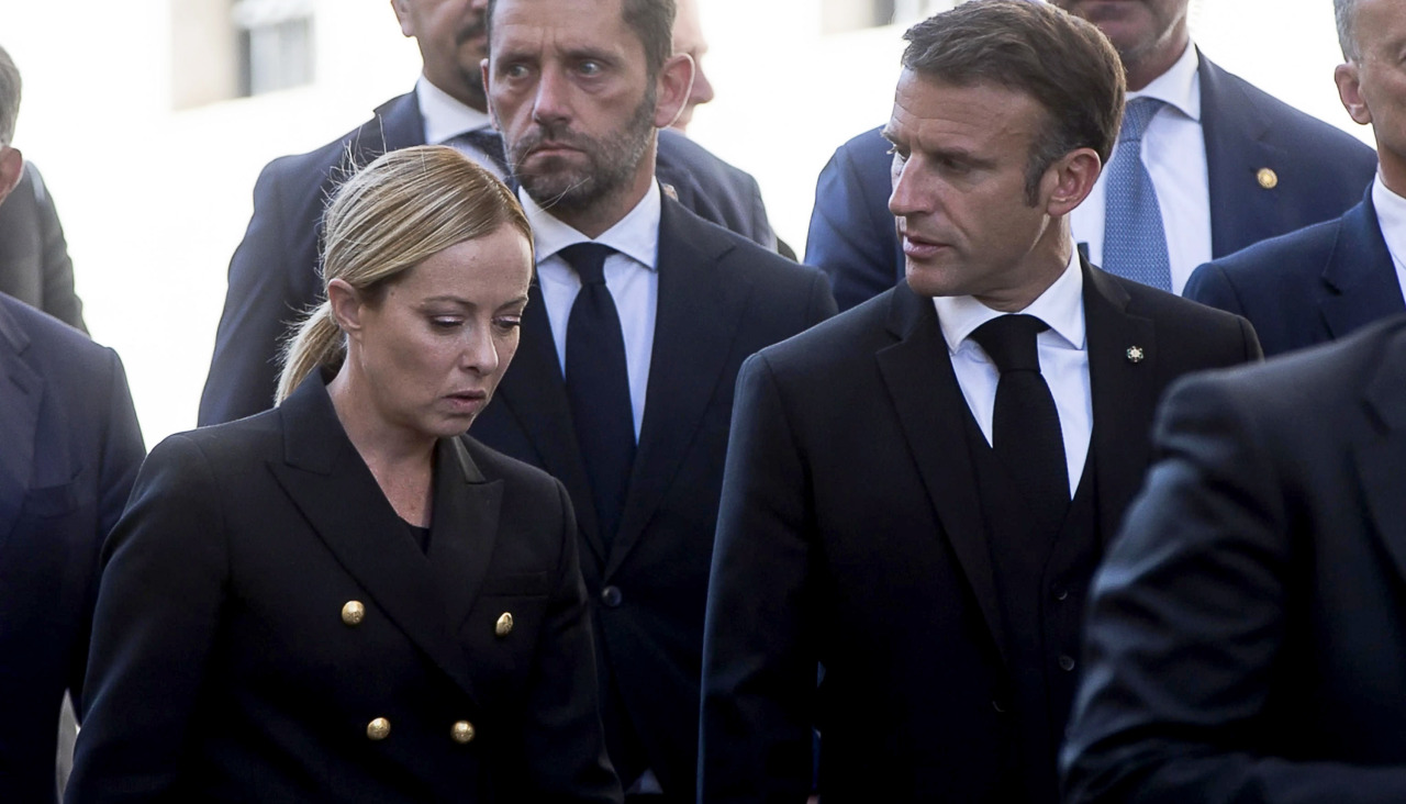 La ultraderechista Meloni recibió en el romano Palacio Chigi a Macron, que acudió a la capital italiana para asistir al funeral del expresidente italiano Giorgio Napolitano.