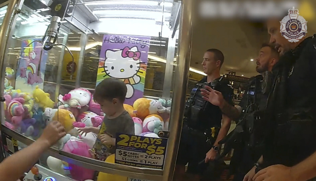 La policía de Australia publicó este jueves un vídeo con el rescate de un niño de tres años que se había quedado atrapado dentro de una máquina de gancho llena de peluches ubicada en un centro comercial del estado de Queensland.