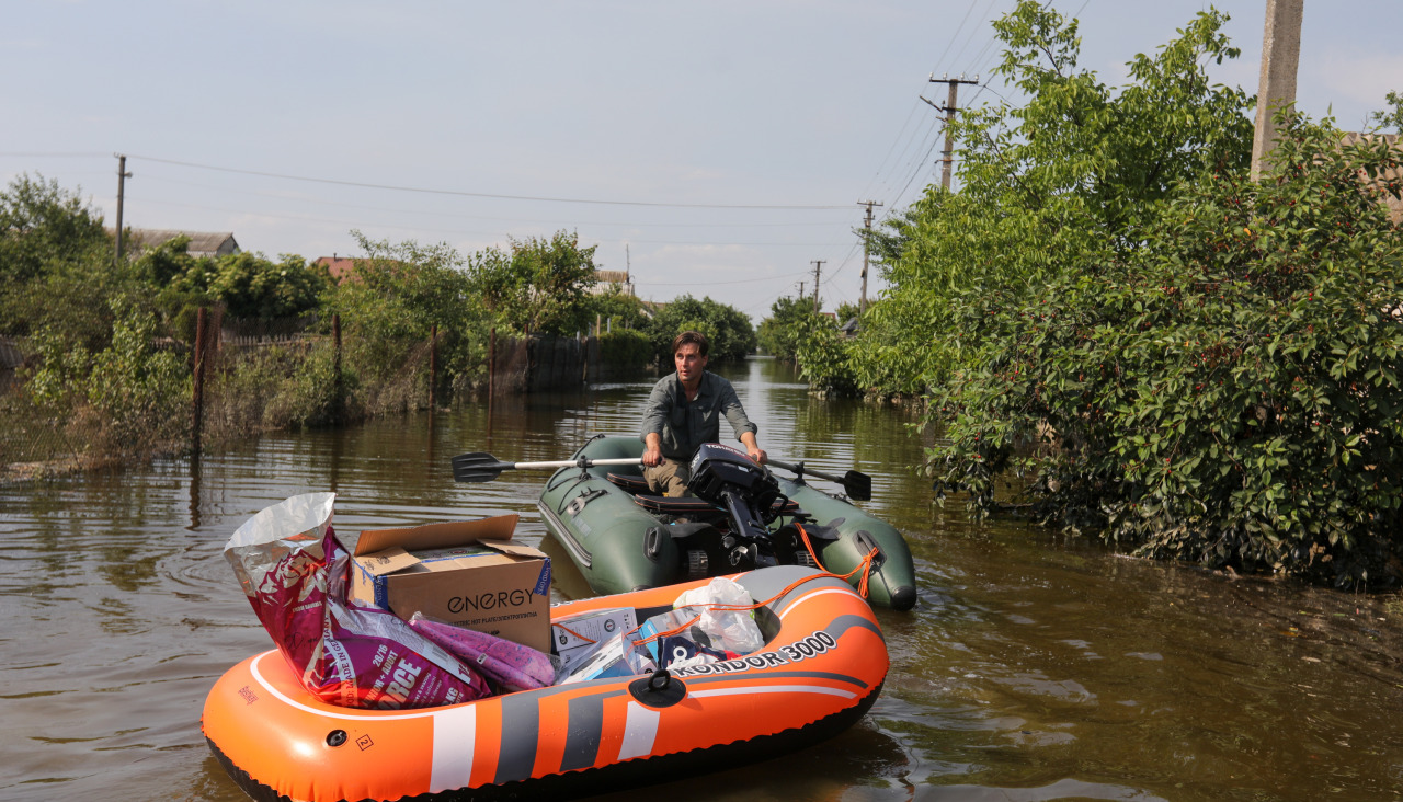 Ante la aparente ausencia de un esfuerzo de rescate real por parte de las autoridades rusas, algunos voluntarios de la orilla controlada por Ucrania se atreven a llegar a Oleshky y evacuar a sus residentes en barcas.