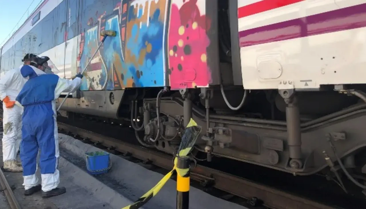Cada año, Renfe destina "miles de horas de trabajo a la limpieza de grafitis". En total, Renfe ha limpiado más de 147.230 metros cuadrados (el equivalente a más de 20 campos de fútbol) de grafitis en sus trenes de toda España durante 2023 y 2024.
