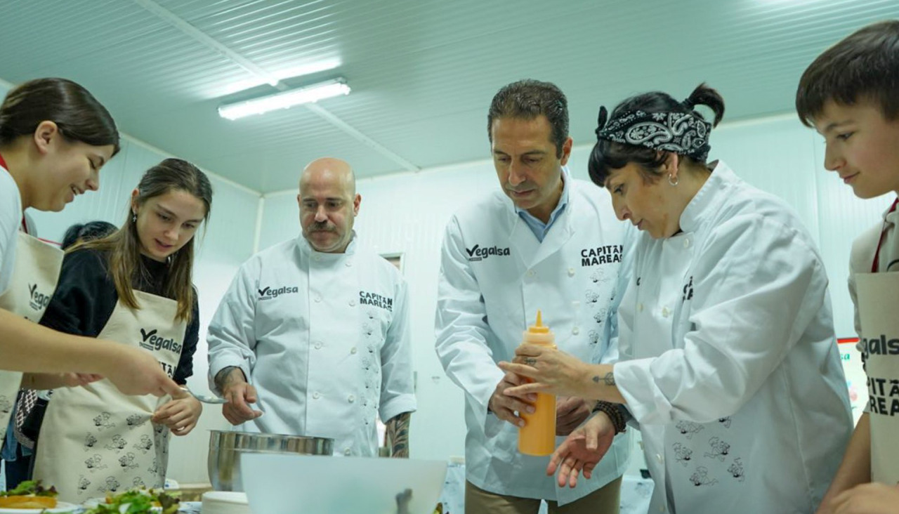 Tras descubrir cómo llega el producto del mar, los alumnos aprenderán sobre alimentación saludable y productos de temporada para poder elaborar un menú semanal por equipos. Estos conocimientos los pondrán en práctica de mano de los chefs gallegos de ‘A Artesa da Moza Crecha’, Lolo Mosteiro y Paula Martínez, que se encargarán de enseñar a los escolares a preparar una receta equilibrada con un pescado de temporada, que va variando en función de la lonja.