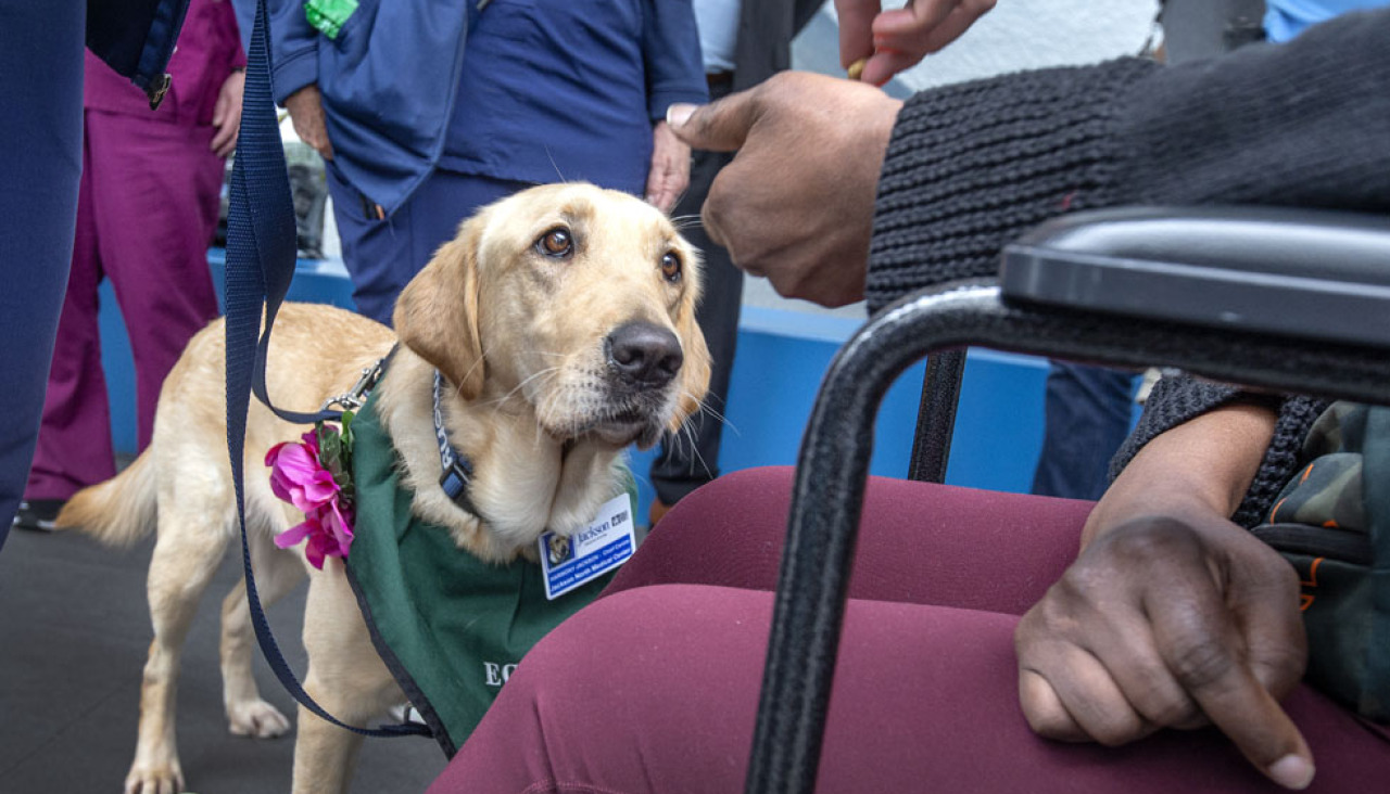 Harmony, una cariñosa perra de 2 años y cruce de Labrador y Golden Retriever, es la alegría del Jackson North Medical Center, hospital del condado de Miami-Dade (Florida) que pone en marcha un proyecto para ayudar a pacientes en rehabilitación por medio de compañía animal, por lo que la han convertido en su mascota.