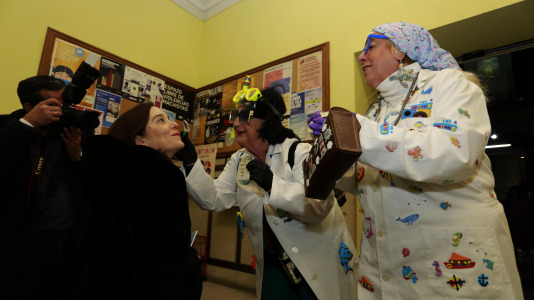 La alcaldesa, que ya triunfó otros años como Shakira o vestida de jabalí, optó en este 2026 por disfrazarse de una turista en trasatlántico, andador y mapa en mano