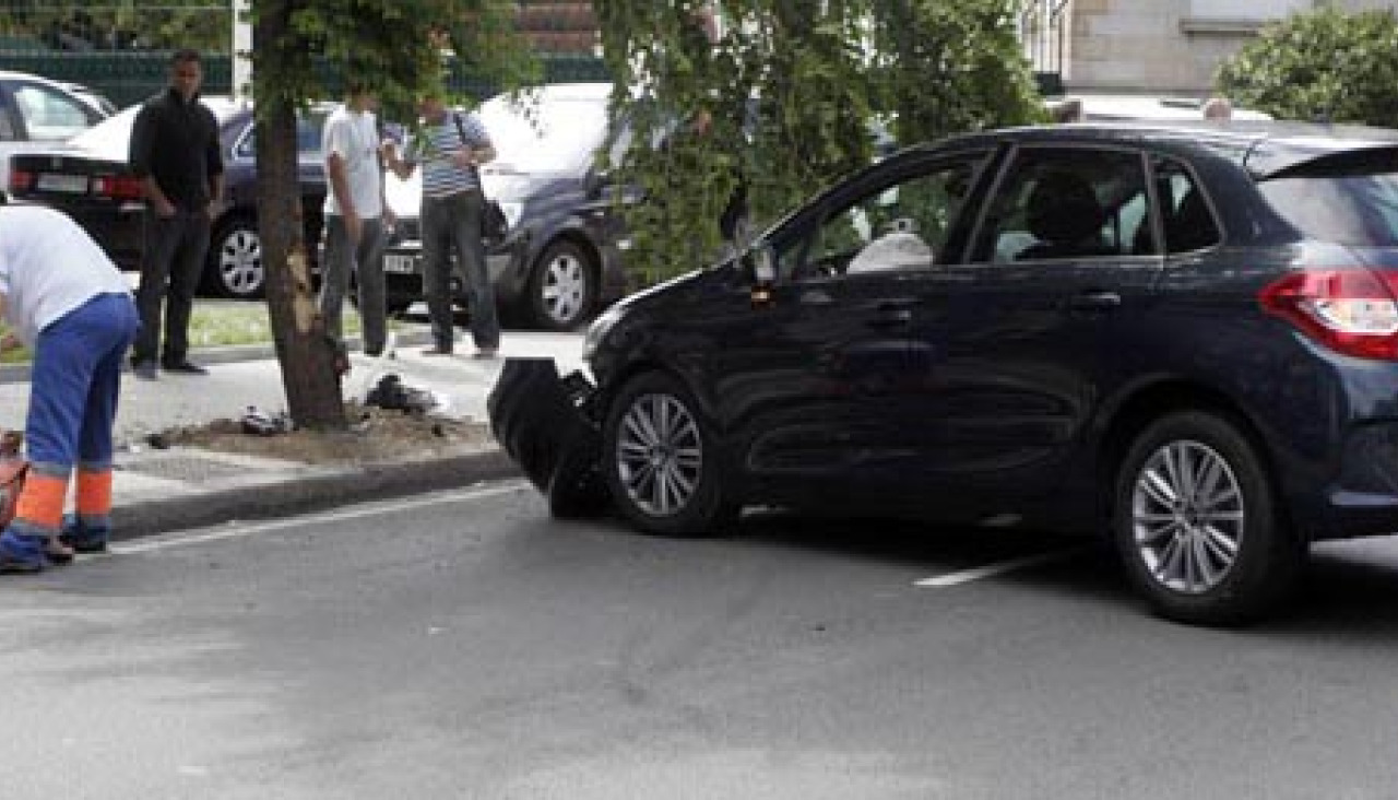 Poco después de la una, otro vehículo colisionaba contra mediana, en este caso, la que está situada junto a Puerta Real. El conductor salió por su propio pie, mientras que su acompañante resultó herida. n