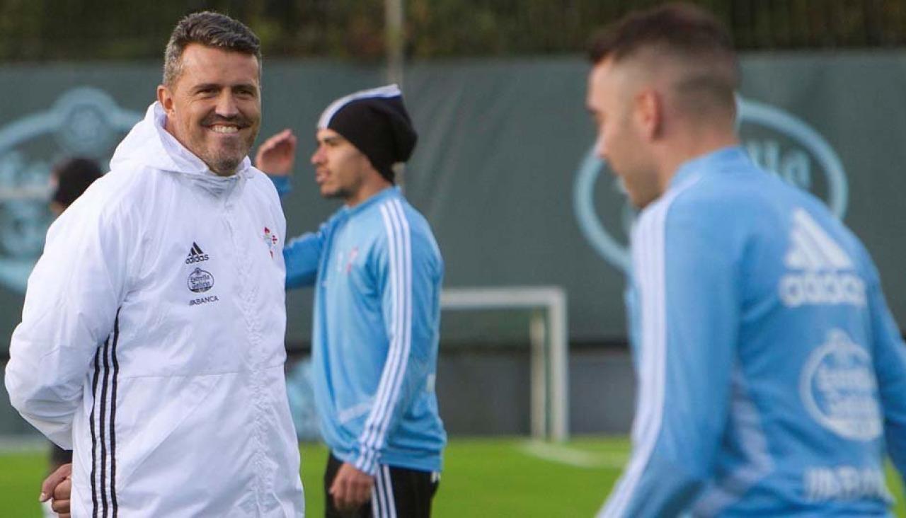 Óscar García Junyent dirigió ayer su primer entrenamiento como entrenador del Celta de Vigo en las instalaciones deportivas de A Madroa, tras firmar el contrato que le unirá a la entidad gallega hasta el final del presente campeonato.