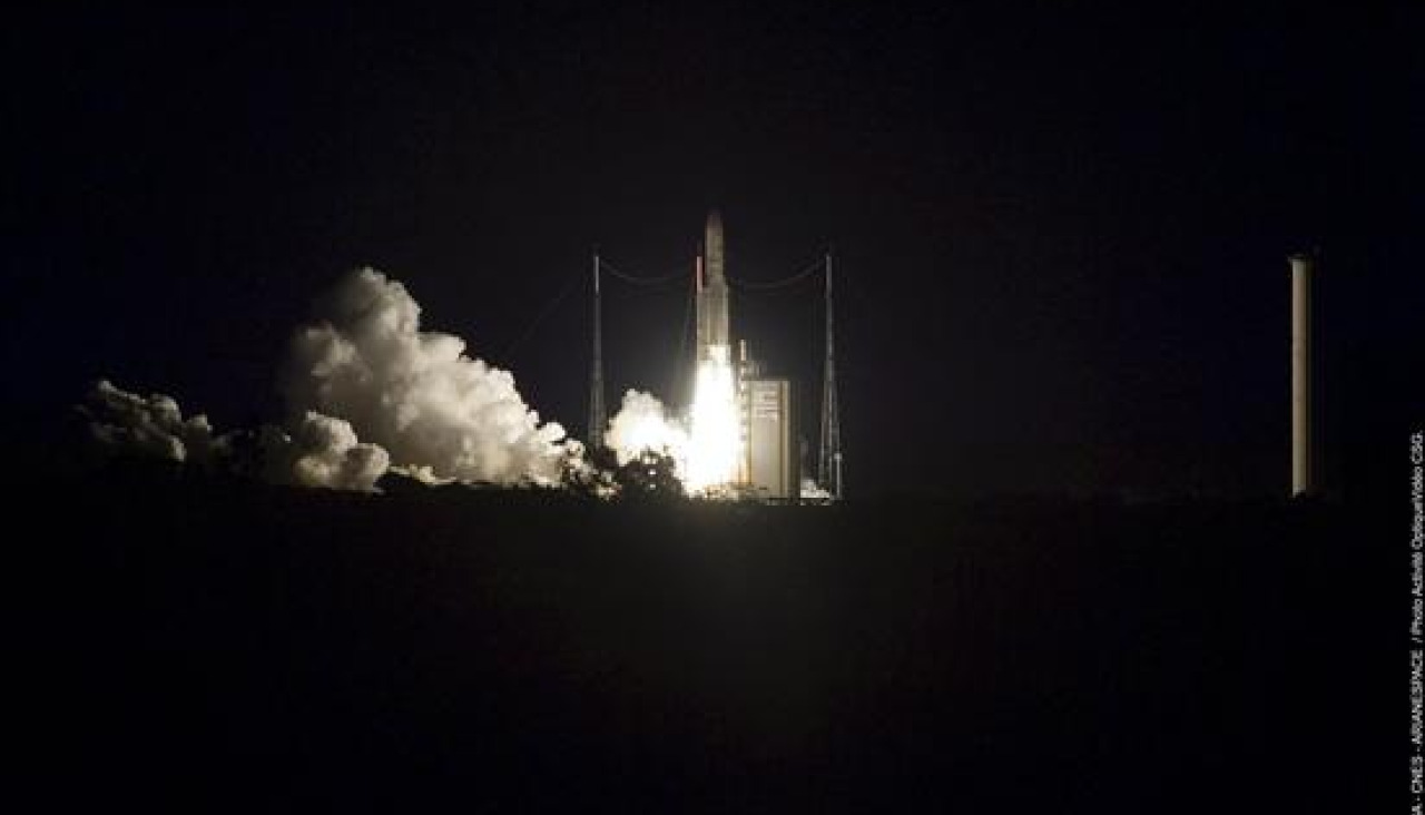 Este ha sido el primer lanzamiento del año de un Ariane 5 y el 54 consecutivo con éxito de esa nave, informó Arianespace en un comunicado.