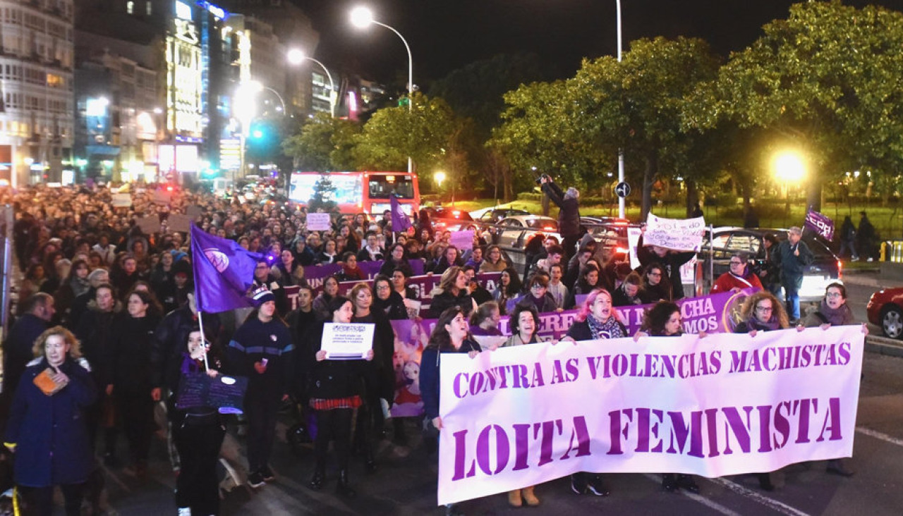 El clamor contra la violencia machista tiñe de violeta las calles de A Coruña en actos multitudinarios