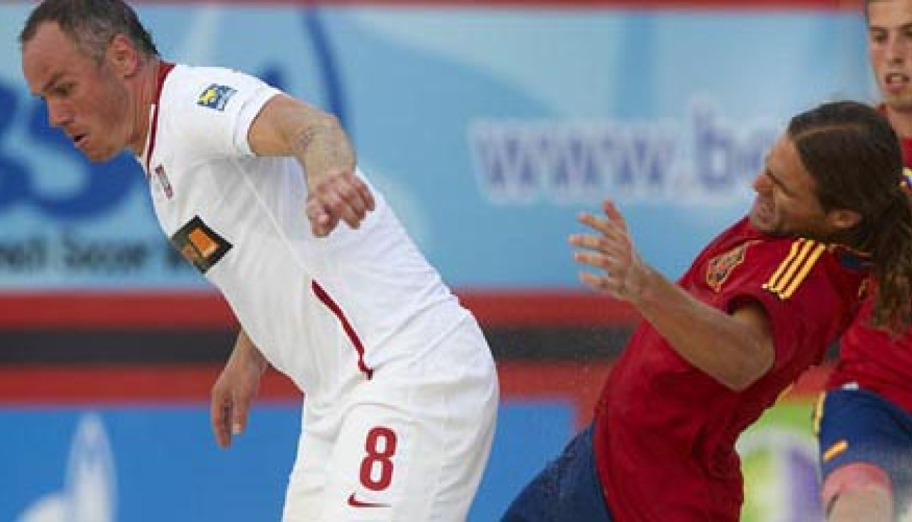 España dio un paso importantísimo para certificar su clasificación para la Copa Mundial del Tahití 2013 en Tahití, al imponerse por 5-3 a Polonia en el primer partido de la fase final ddel Clasificatorio Europeo que se celebra en Moscú, sumando tres puntos que la colocan al frente de su grupo. Una victoria hoy ante la potente Ucrania sellarría el billete de ‘La Roja’.