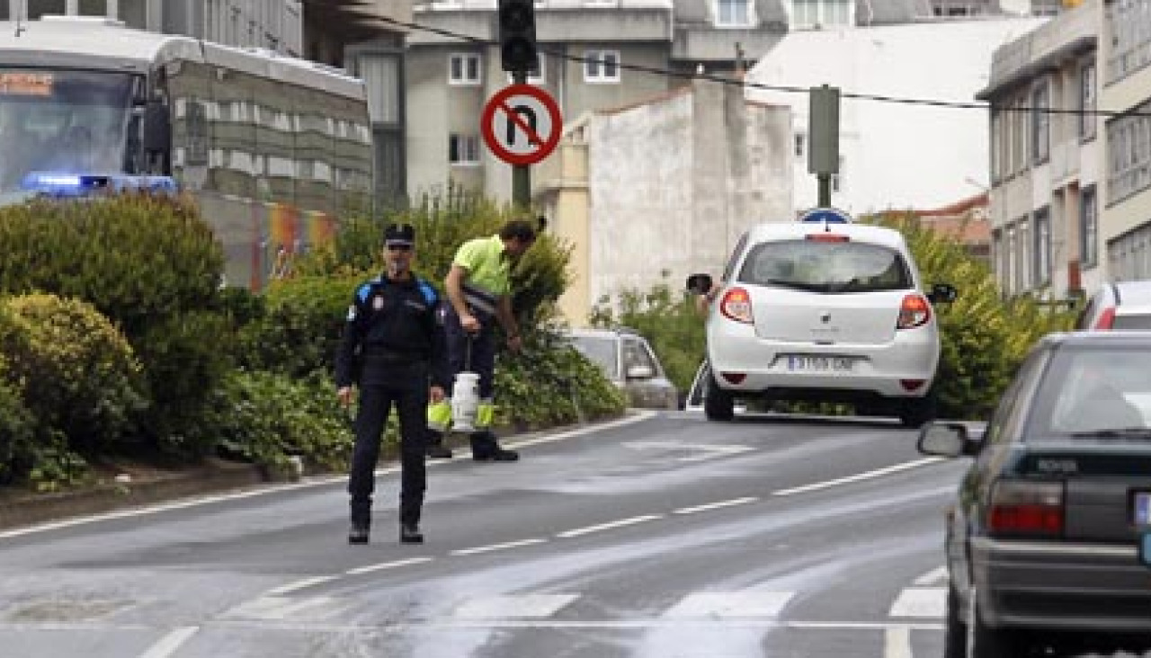 La mancha de combustible no fue la única incidencia que se registró en la misma zona durante la jornada de ayer. Eran las cuatro menos cuarto de la tarde, cuando se producía una colisión entre tres vehículos en la avenida de Arteixo, a la altura del parque de Vioño.