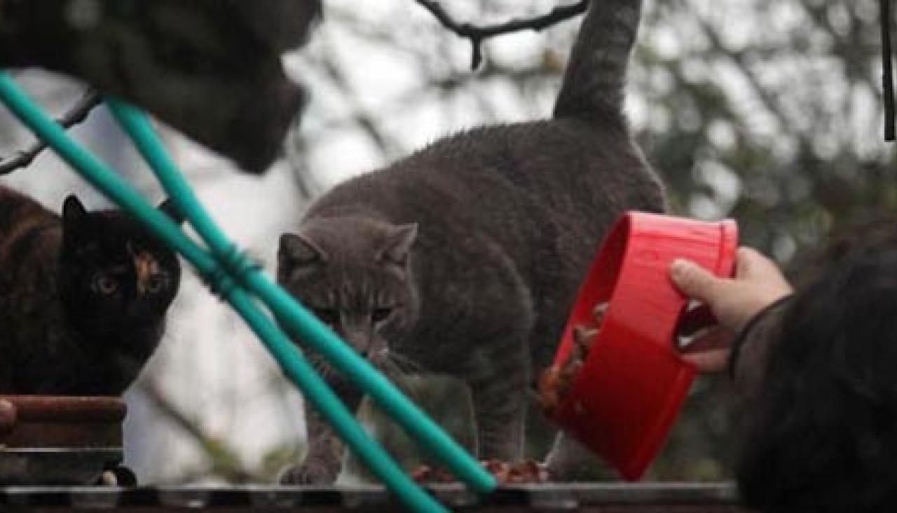 Cuando Ana Martínez acude al lugar donde reside su colonia de gatos, éstos se desperezan y abandonan sus escondites. Son media docena de animales los que mastican el pienso que les ofrece esta amante de los animales. Para sus vecinos de Eirís se trata de una afición inofensiva. Para el Ayuntamiento, es una infracción a las ordenanzas municipales que puede castigarse con hasta 300 euros de multa, así que a Ana esta costumbre podría salirle muy cara pero ella insiste: “No pienso que esté haciendo algo malo. Creo que es una cuestión de humanidad atender a estos animales”.
