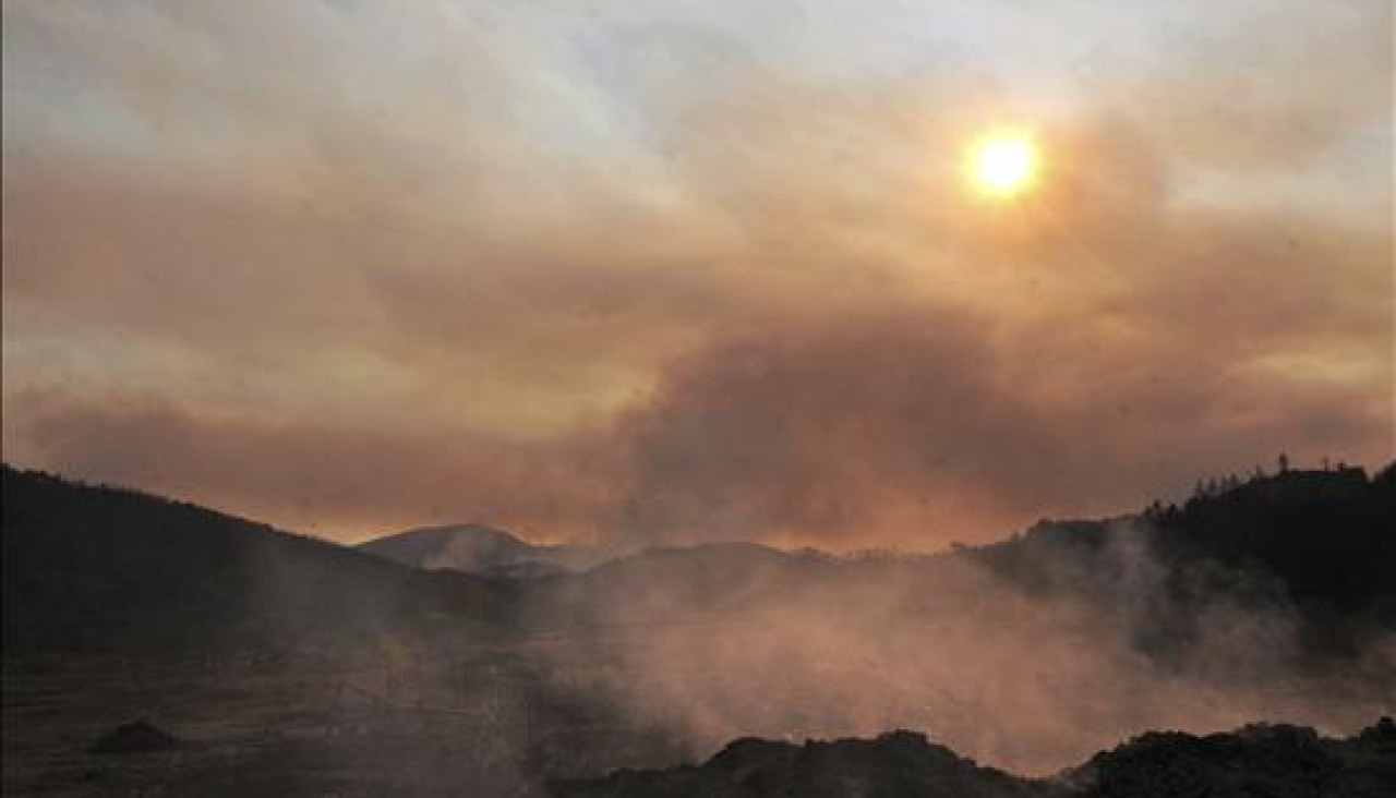 El perímetro afectado se mantiene estable en unas 13.800 hectáreas, aunque el conseller ha matizado que al sobrevolarlo se ven algunas zonas no quemadas y otras sólo superficialmente, por lo que el número de hectáreas efectivamente quemadas se situaría entre 9.000 y 10.000.
