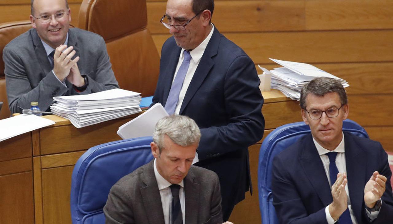 El conselleiro también pidió a los grupos parlamentarios que muestren “cierta coherencia” al recriminarles que hablasen de fondos sin ejecutar cuando “el presupuesto no nato del señor Sánchez minoraba un 40% la inversión en Galicia”.