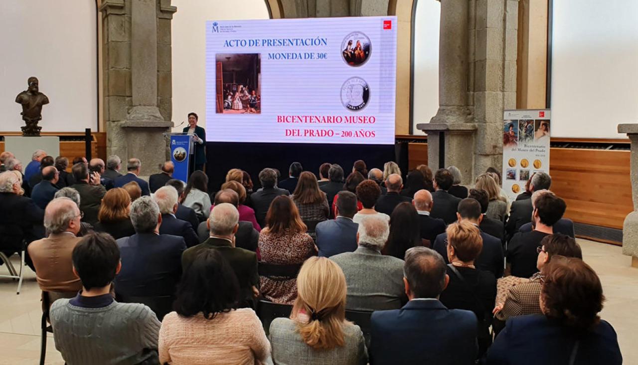 La nueva moneda fue presentada en un acto en el que participaron los directores del Museo del Prado y del Real Patronato de la pinacoteca, Miguel Falomir y Javier Solana, respectivamente; la subsecretaria del Ministerio de Hacienda, María Pilar Paneque, y el responsable de Monedas Conmemorativas de la Real Casa de la Moneda.