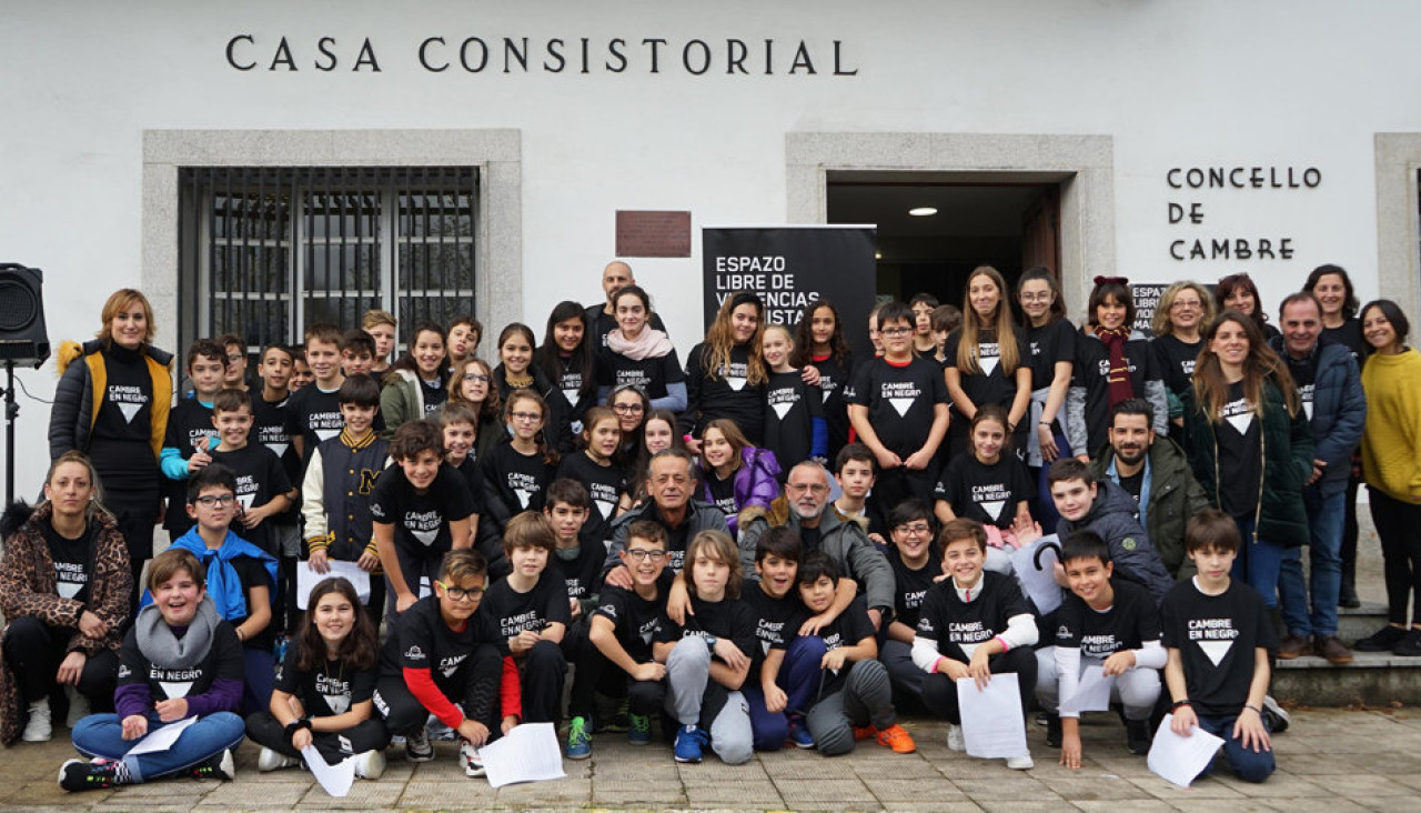 En Cambre, la Casa Consistorial acogió el acto central de la campaña “Cambre en Negro”, al que acudieron los concejales del Gobierno y los partidos que conforman la Corporación Municipal, así como representantes de asociaciones y entidades del municipio. También estuvo presente el alumnado del CEIP Wenceslao Fernández Flórez, que jugó un papel fundamental en la jornada.