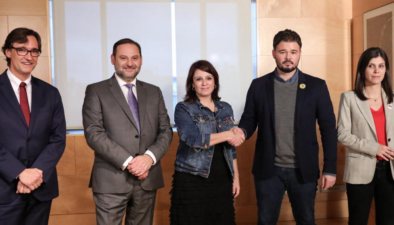 Seis personas integraron los dos equipos negociadores. Por parte del PSOE asistió la portavoz del grupo socialista en el Congreso, Adriana Lastra, el secretario de Organización del PSC, Salvador Illa, y el ministro de Fomento en funciones y secretario de Organización del PSOE, José Luis Ábalos.