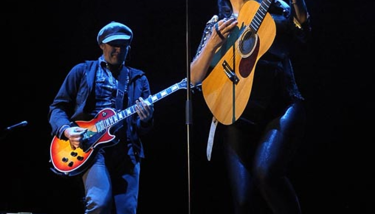 El dúo aragonés subió al escenario pasadas las diez de la noche para interpretar una amplia colección de sus temas más conocidos y exitosos. Pero además de hacer un largo recorrido por su trayectoria musical, Amaral presentó ante el público local su último trabajo de estudio “Hacia lo Salvaje”.