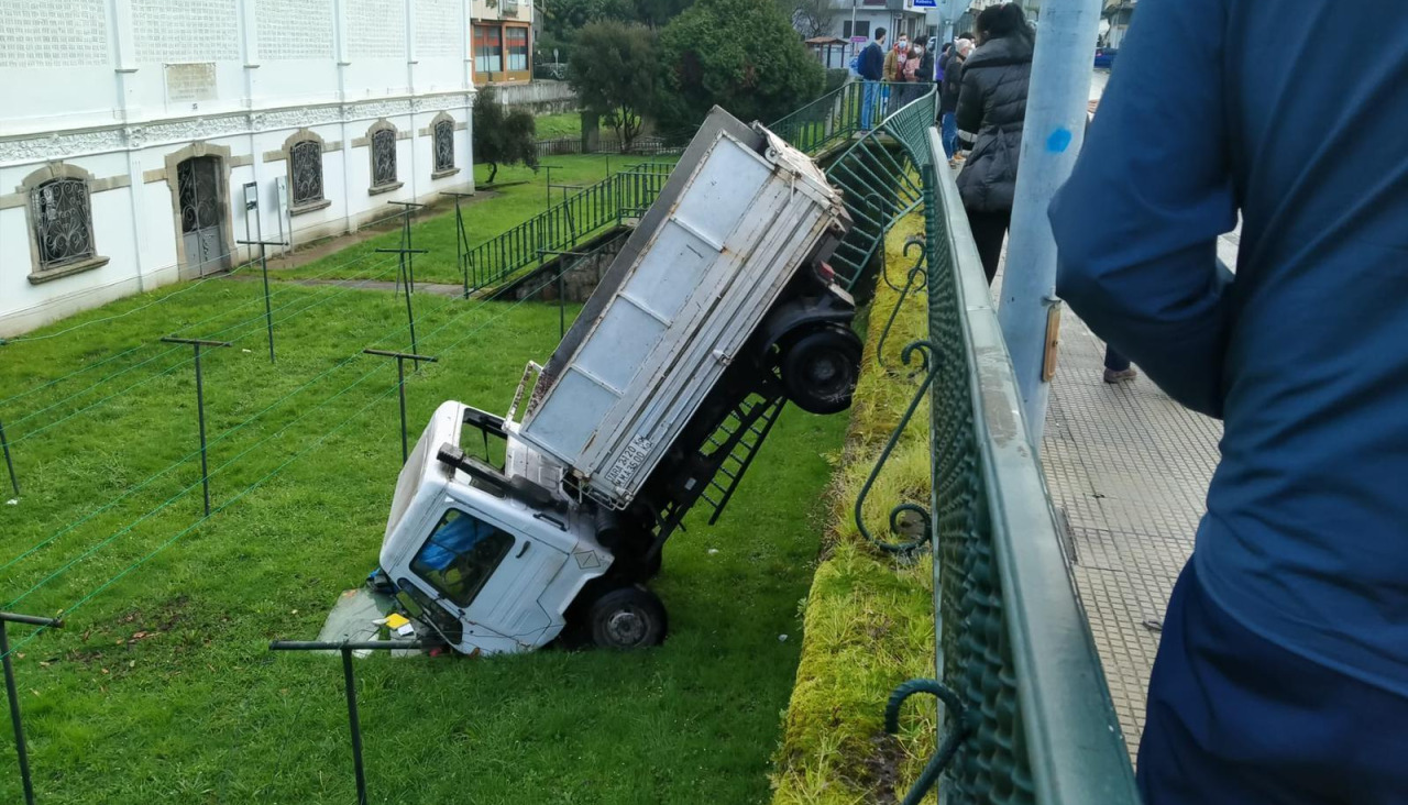Sin heridos pero con numerosos vecinos alrededor, sorprendidos tanto por dónde ocurrió como por el estado en el que quedó el vehículo, con la cabina “enterrada” en el exterior del antiguo Lavadero de As Cascas. El suceso ocurrió a las 18.20 y hasta allí se desplazaron de inmediato la Policía Local y Protección Civil de Betanzos.