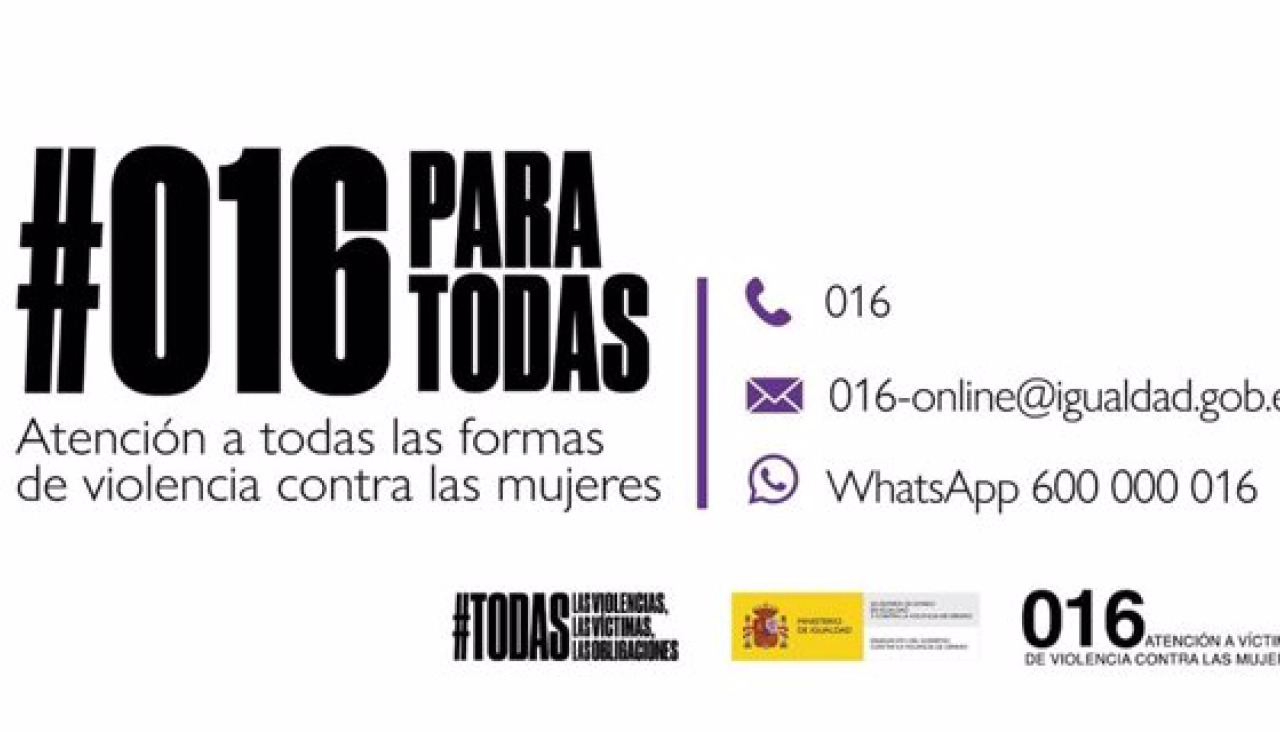 El Ministerio de Igualdad, por medio de la Delegación del Gobierno contra la Violencia de Género, recuerda que el teléfono 016, las consultas online a través del email 016-online@igualdad.gob.es y el canal del WhatsApp en el número 600 000 016, siguen funcionando con normalidad las 24 horas, todos los días de la semana.