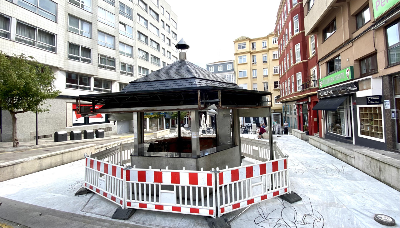El quiosco de la plaza del Humor está ya vallado desde que se retiraron las paredes.