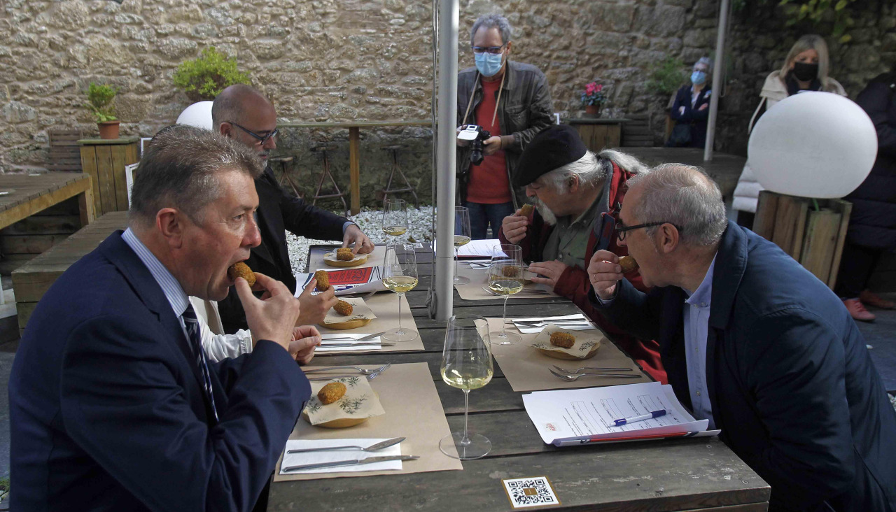 El concejal de Turismo, Juan Ignacio Borrego, y el gerente del Consorcio de Turismo de A Coruña, Moisés Jorge Naranajo, acompañaron ayer al jurado que valoró los platos presentados al Concurso de Tapas Picadillo en la categoría de “Maridaje”.