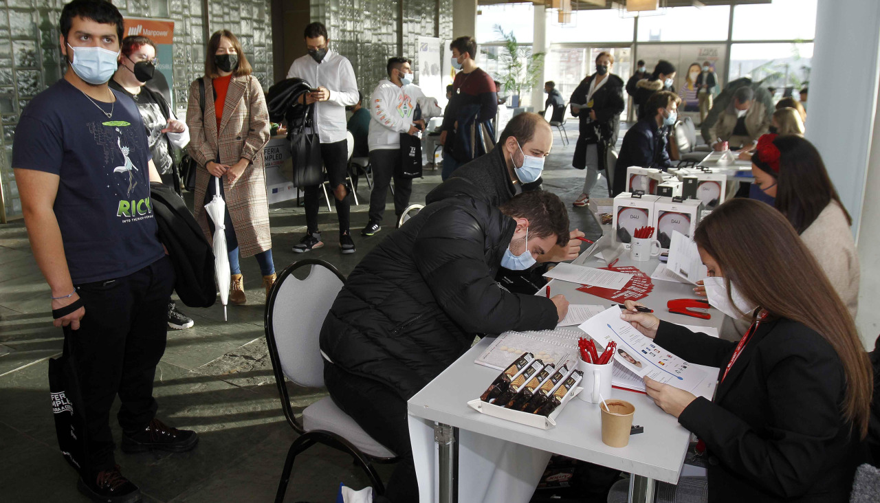 Más de 400 jóvenes pasaron ayer por la décima edición de la Feria de Empleo de la Cámara de Comercio, una iniciativa que se retomó en Palexco de forma presencial tras la pandemia y que congregó a unas 60 compañías, las cuales ofrecieron información, asesoramiento y cien puestos de trabajo para menores de 30 años e inscritos en el Sistema Nacional de Garantía Juvenil.